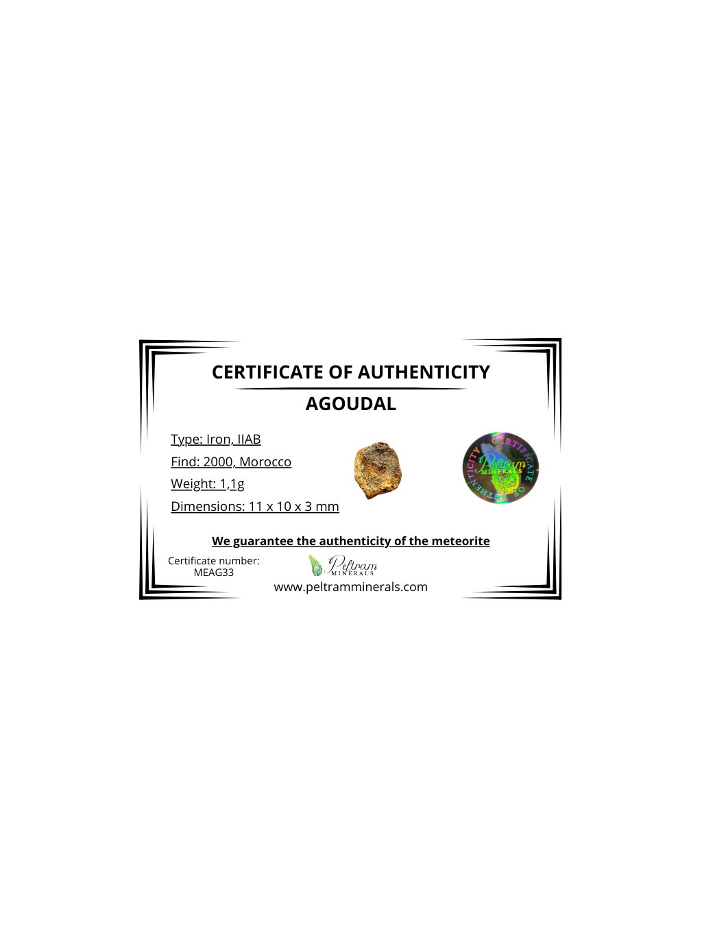 Meteorit Agoudal "Imilchil" 1,1g – Marokko