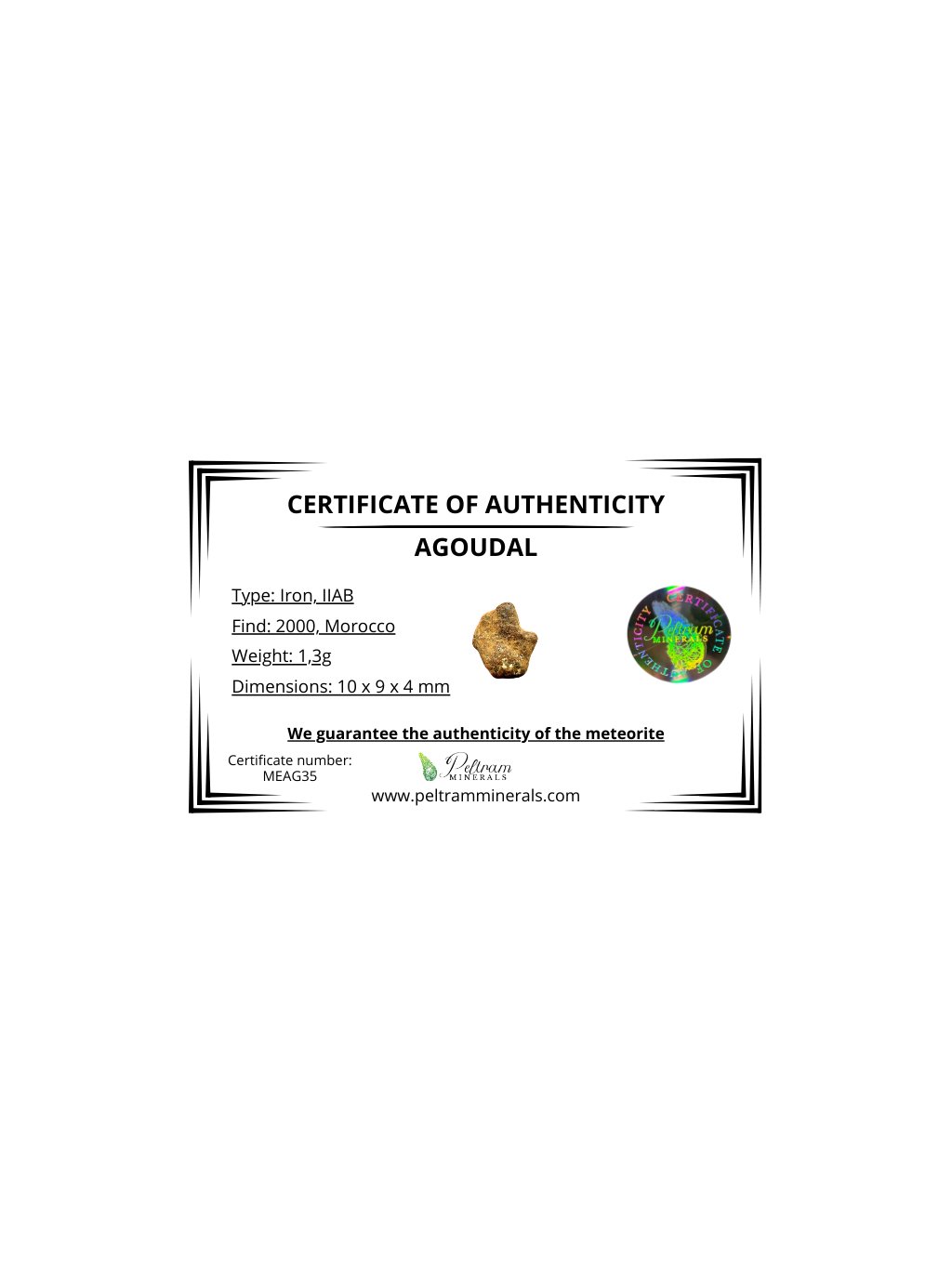 Meteorit Agoudal "Imilchil" 1,3g – Marokko