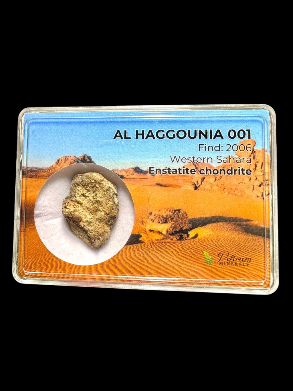 Der Meteorit Al Haggounia 001 wurde im Jahr 2006 entdeckt in der Nähe von Al Haggounia in der Westsahara. Ursprünglich wurde er als Aubrit (ein enstatitreicher Achondrit) eingestuft, spätere Studien stuften ihn jedoch als vesikuläres, unvollständig geschmolzenes Impaktschmelzgestein eines EL-Enstatitchondriten neu ein.