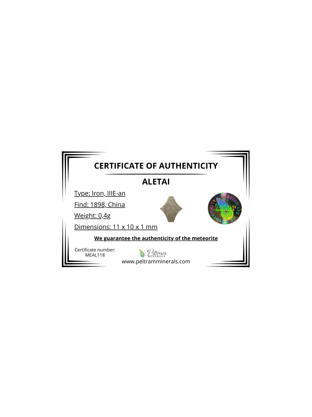 Meteorit Aletai 0,4g – Xinjiang, China