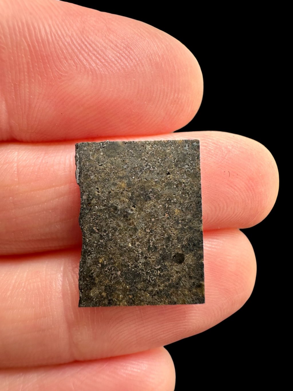 Insgesamt weist der Meteorit eine feine Brekzienstruktur auf – also eine leicht zerbrochene und wieder verfestigte Struktur – was auf frühere Kollisionen im Weltraum zurückzuführen ist. Diese Textur sowie der geringe Metallgehalt und sichtbare metamorphe Merkmale entsprechen der Klassifikation als LL6.