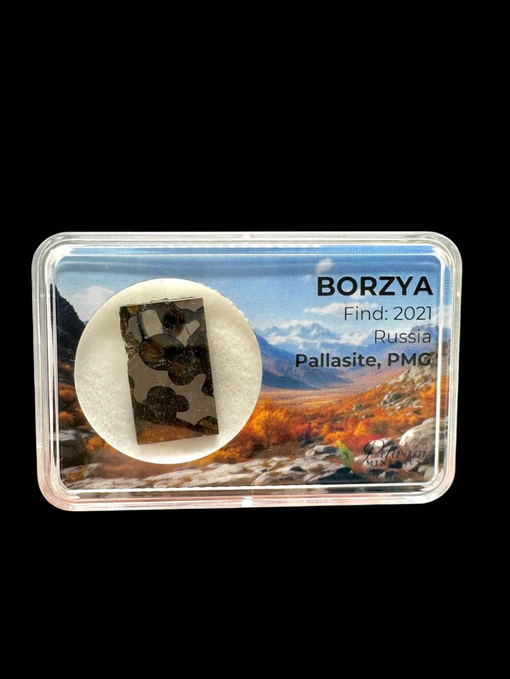 Was den Meteorit Borzya betrifft, so wird das Hauptstück genau in dieser Sammlung aufbewahrt, was bedeutet, dass es Teil einer wissenschaftlichen Kollektion ist, in der es sorgfältig analysiert und für künftige Studien konserviert wird. Wenn Proben von Pallasiten wie Borzya auf den Markt kommen, kann ihr Preis höher sein als der von allgemein erhältlichen Meteoriten.