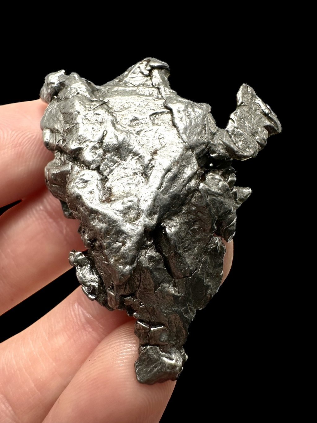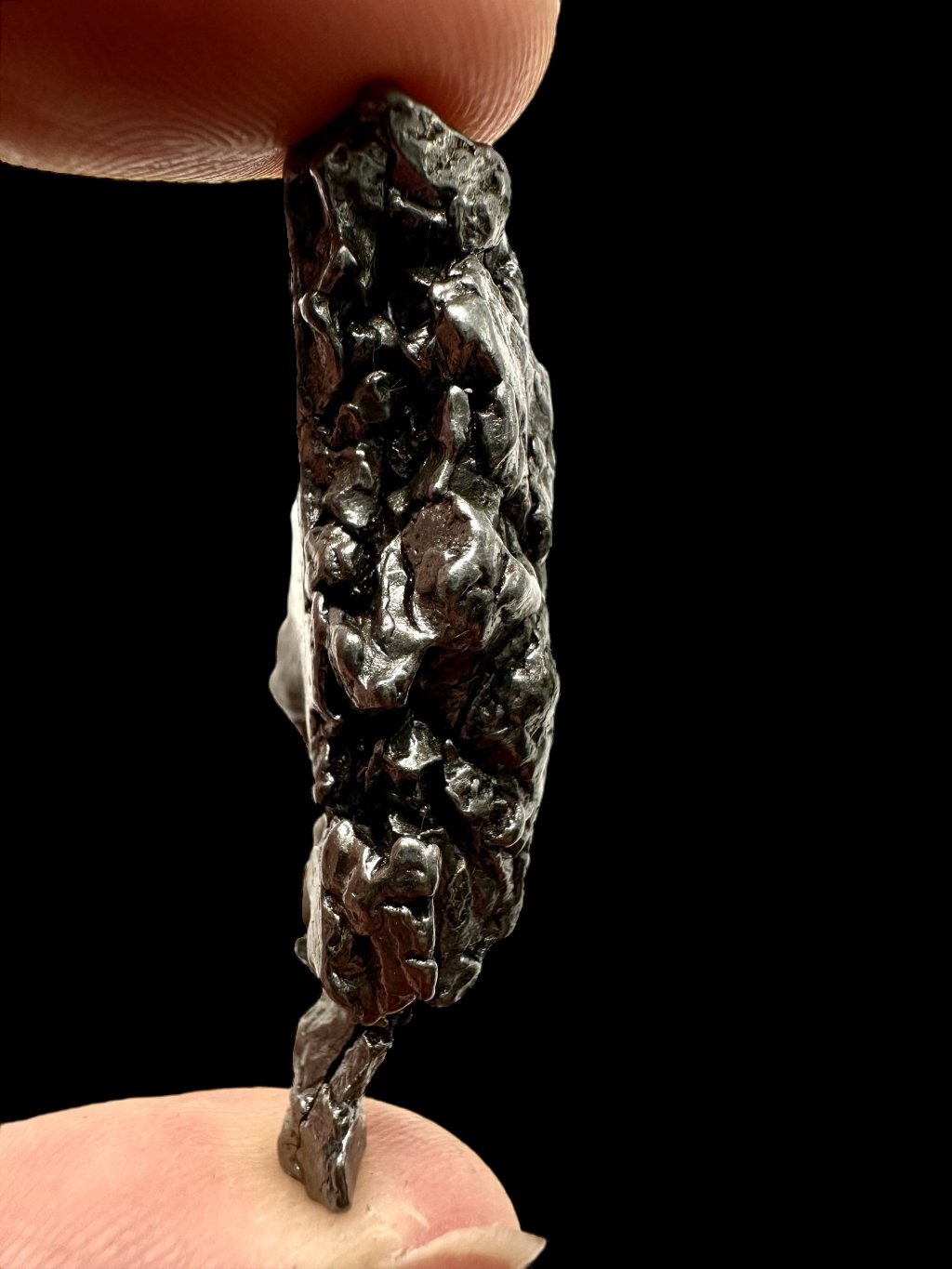 Campo del Cielo besteht hauptsächlich aus Eisen (ca. 92 %) und Nickel (rund 6,7 %), mit kleinen Anteilen weiterer Metalle wie Kobalt und Phosphor. Er enthält auch charakteristische kristalline Strukturen – sogenannte Widmanstätten-Muster –, die sichtbar werden, wenn die Oberfläche mit Säure geätzt wird. Diese Muster entstehen durch langsames Abkühlen der Eisen-Nickel-Legierung im Weltraum und sind typisch für Eisenmeteoriten.