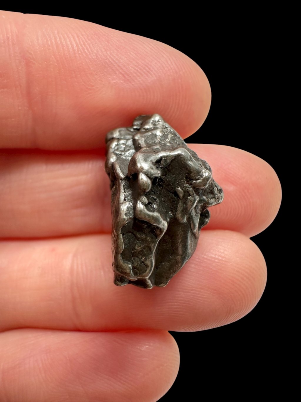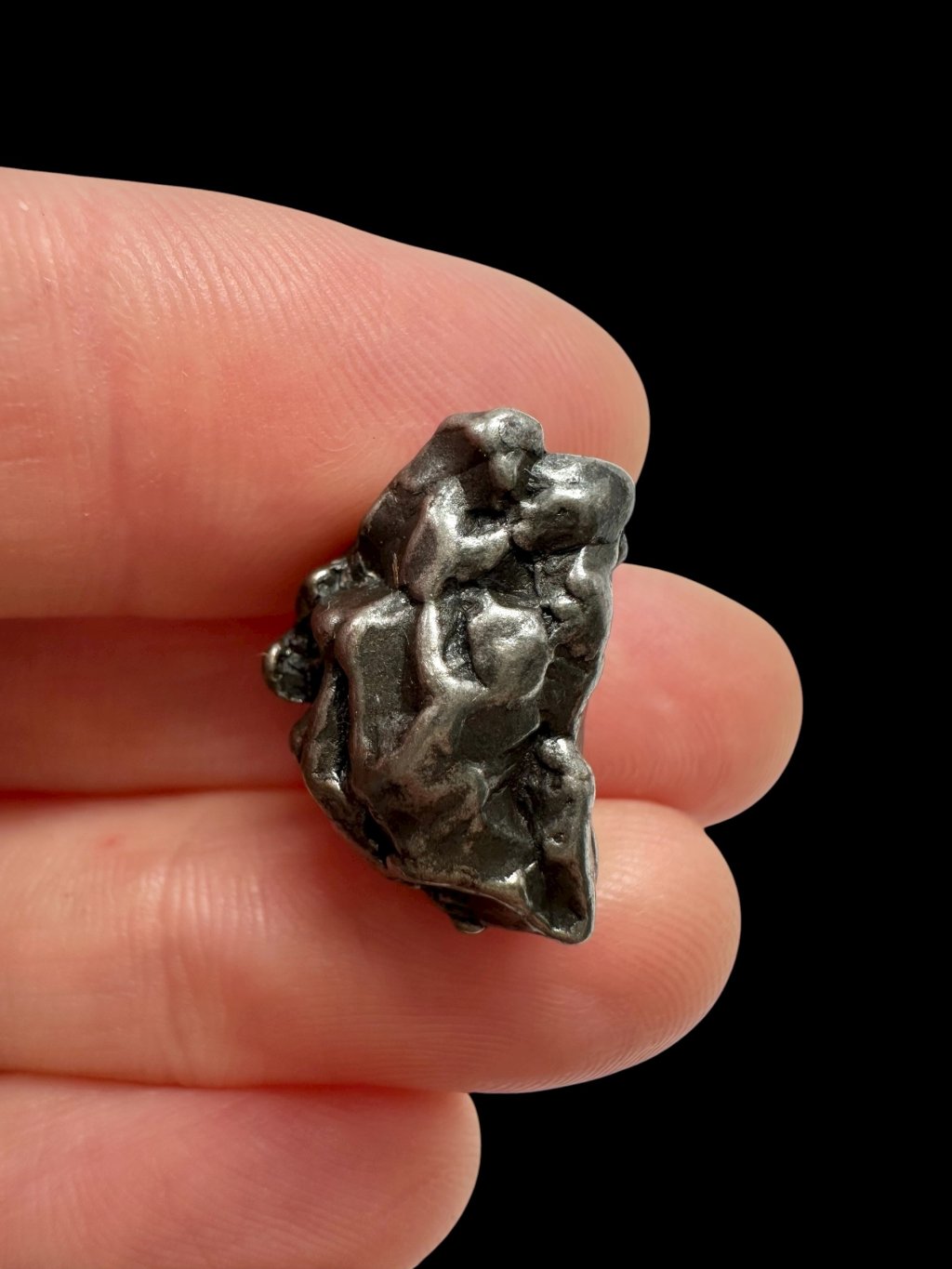 Campo del Cielo besteht hauptsächlich aus Eisen (ca. 92 %) und Nickel (rund 6,7 %), mit kleinen Anteilen weiterer Metalle wie Kobalt und Phosphor. Er enthält auch charakteristische kristalline Strukturen – sogenannte Widmanstätten-Muster –, die sichtbar werden, wenn die Oberfläche mit Säure geätzt wird. Diese Muster entstehen durch langsames Abkühlen der Eisen-Nickel-Legierung im Weltraum und sind typisch für Eisenmeteoriten.