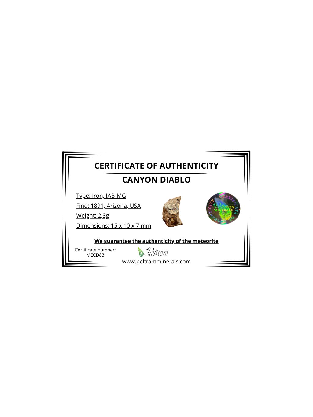 Meteorit Canyon Dibalo 2,3g – Arizona, USA