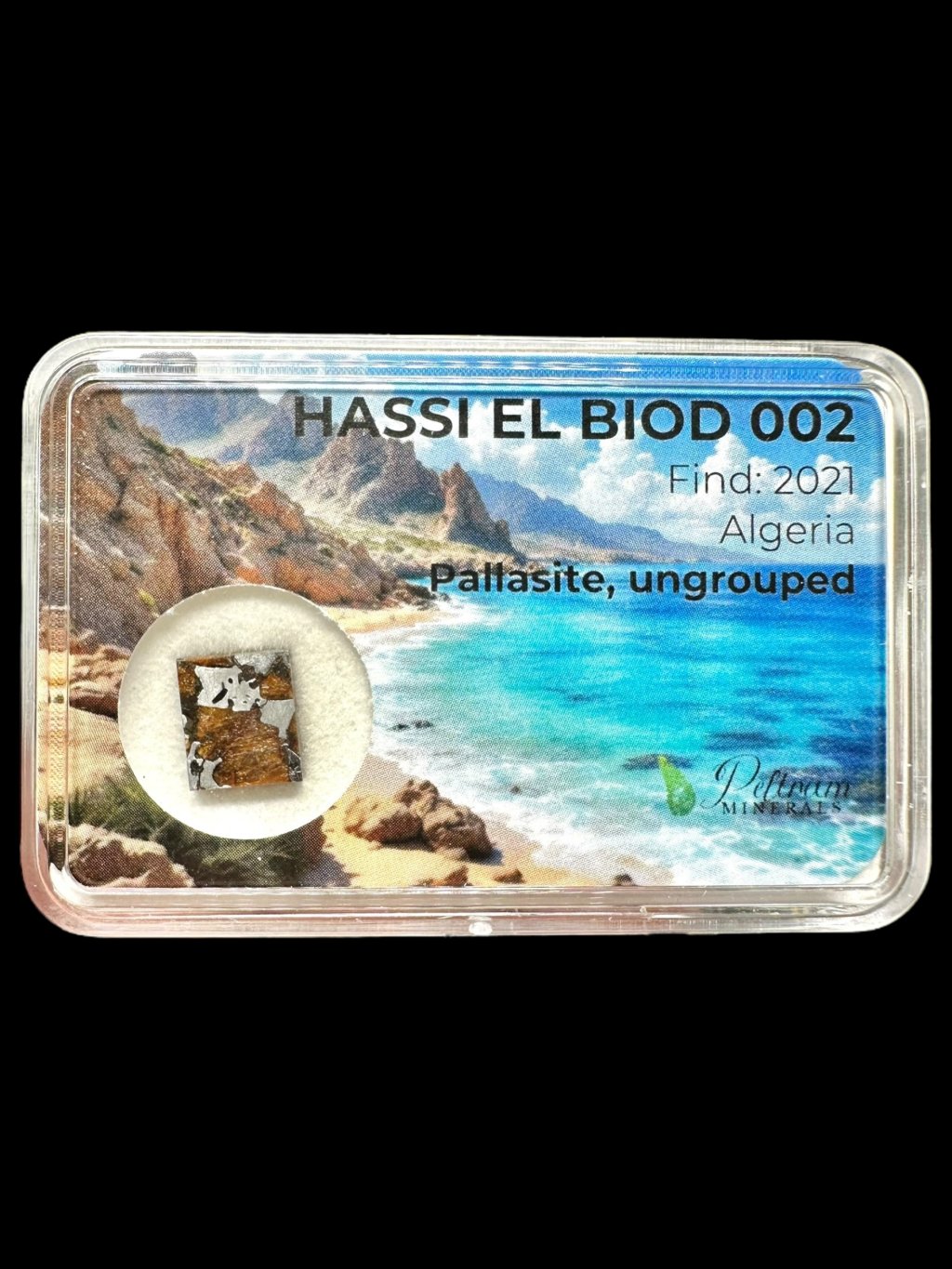 Dieser Meteorit ist durch seine Zusammensetzung außergewöhnlich und gehört keiner bisher bekannten Pallasitgruppe an. Hassi el Biod 002 weist eine einzigartige Zusammensetzung aus Olivin und Sauerstoffisotopen auf, die ihn unter den bekannten Pallasiten besonders macht.