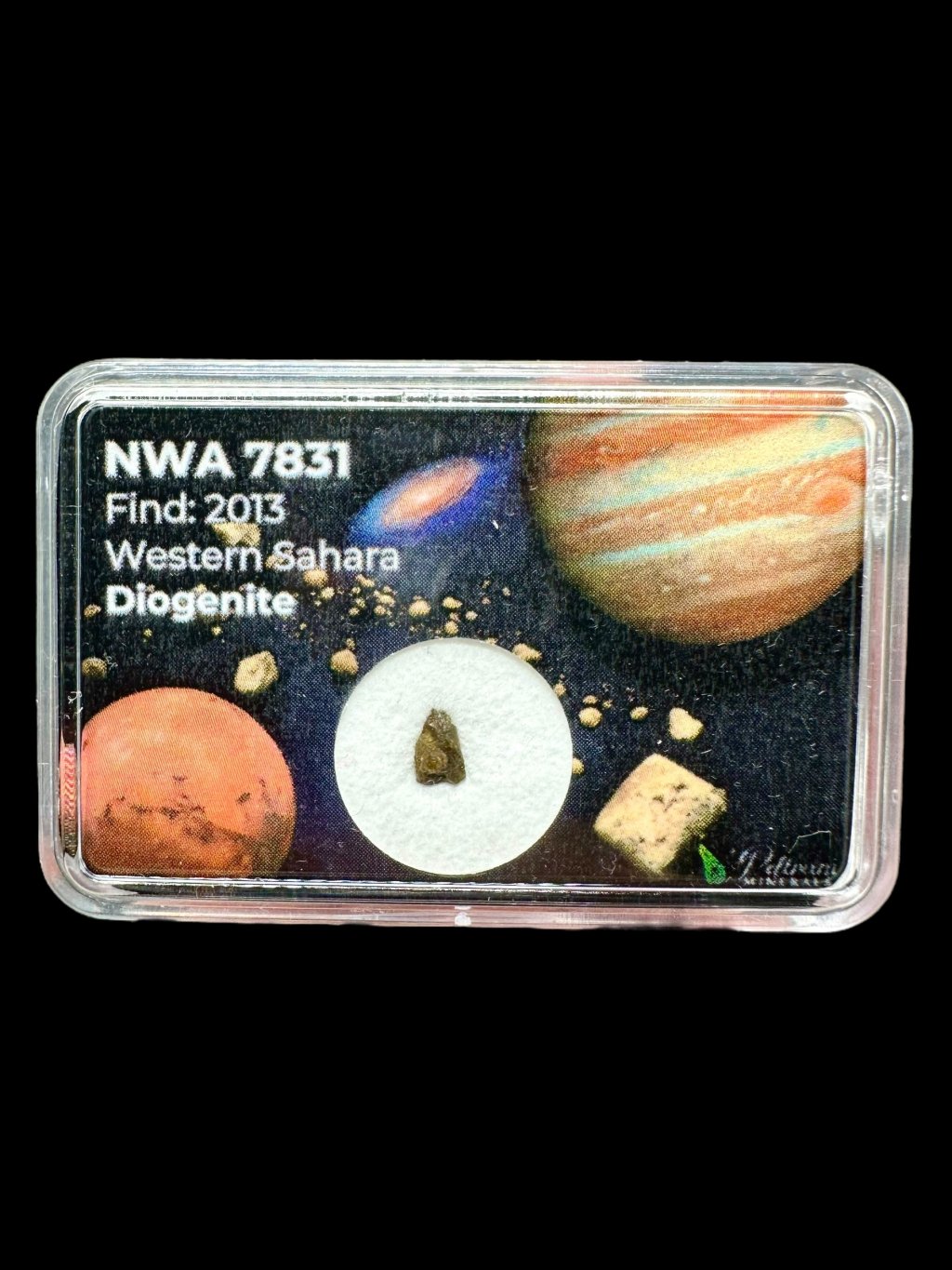 Der Meteorit NWA 7831 ist ein faszinierendes Exemplar eines Diogeniten, einer Art von Achondrit, der aus dem Mantel des Asteroiden Vesta stammt. Er wurde im März 2013 in der Westsahara, genauer gesagt in der Region Saguia el Hamra, entdeckt. Die Gesamtmasse aller gefundenen Stücke beträgt etwa 20 Kilogramm.