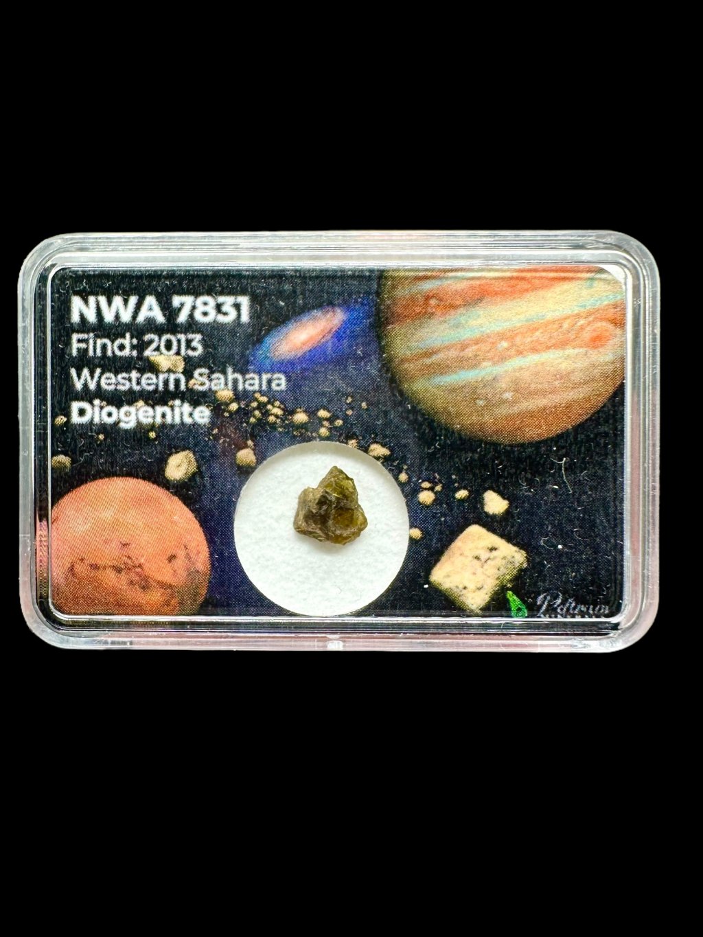Der Meteorit NWA 7831 ist ein faszinierendes Exemplar eines Diogeniten, einer Art von Achondrit, der aus dem Mantel des Asteroiden Vesta stammt. Er wurde im März 2013 in der Westsahara, genauer gesagt in der Region Saguia el Hamra, entdeckt. Die Gesamtmasse aller gefundenen Stücke beträgt etwa 20 Kilogramm.