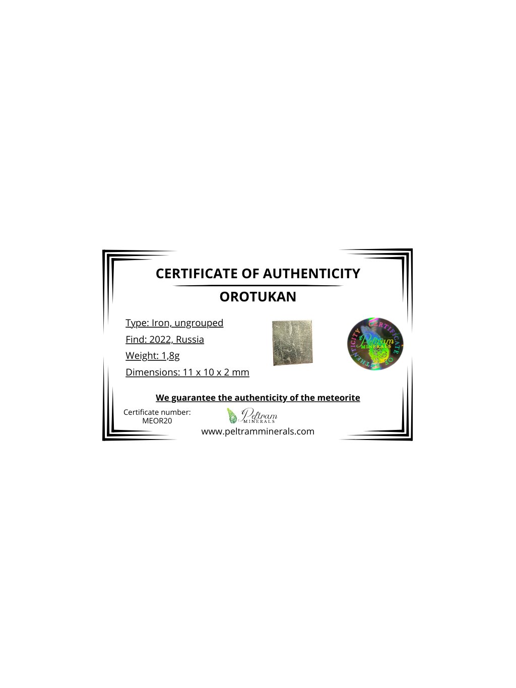 Aufgrund seiner jüngsten Entdeckung sind detaillierte Informationen über den Meteoriten Orotukan derzeit noch begrenzt, was ihn zu einem wissenschaftlich und sammlerisch attraktiven Objekt macht.