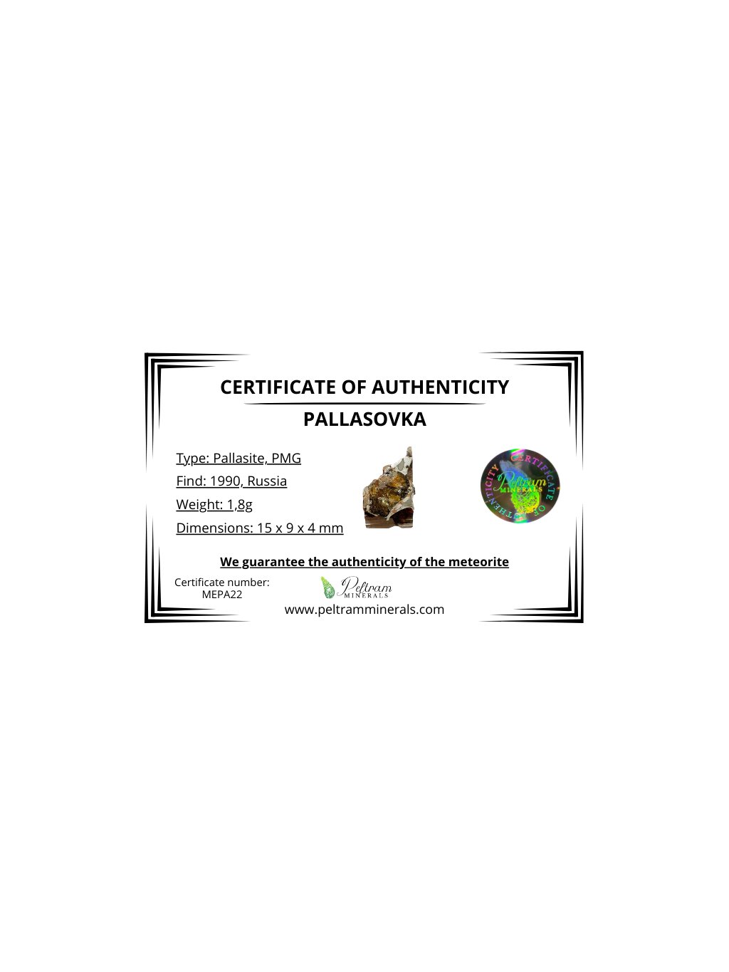 Meteorit Pallasit Pallasovka 1,8g – Russland