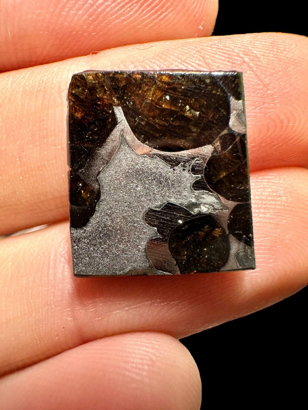 Verteilung: Olivinkristalle sind in das Metall eingebettet und gleichmäßig über den gesamten Meteoriten verstreut. Diese Kombination aus Metall und Olivin verleiht dem Sericho-Meteoriten sein unverwechselbares Aussehen.