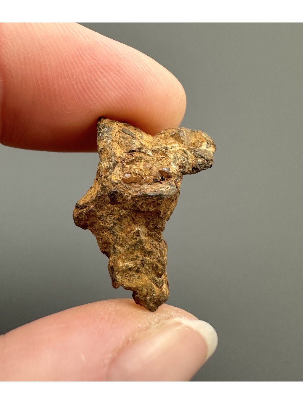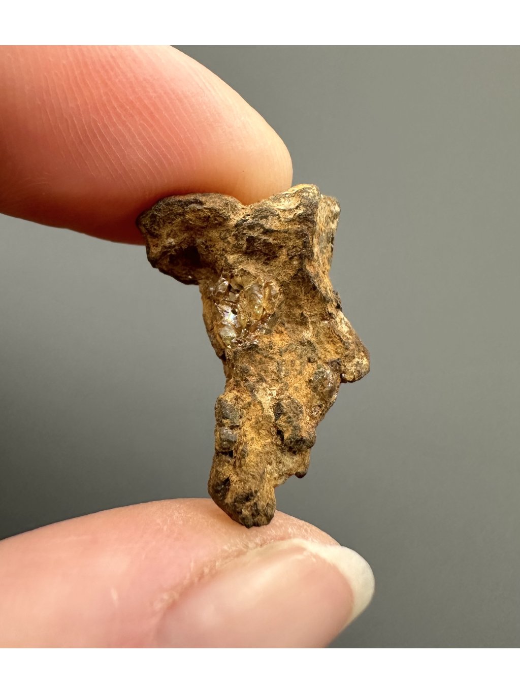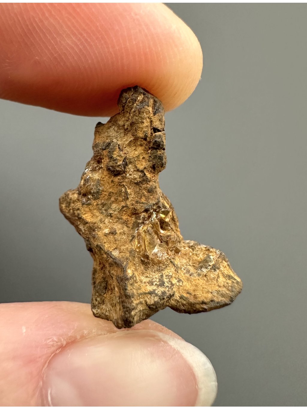 Größe und Form: Olivinkristalle im Sericho-Meteoriten können von kleinen Körnern bis zu großen, sichtbaren Kristallen reichen. Diese Kristalle sind oft durchsichtig bis durchscheinend und können in ihrer Farbe von grün über gelb bis orange variieren.