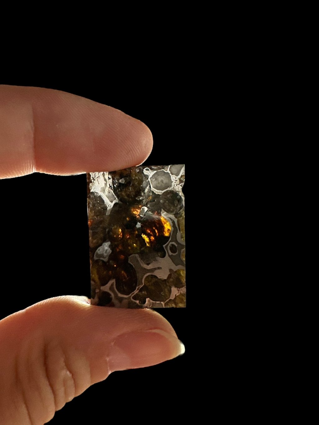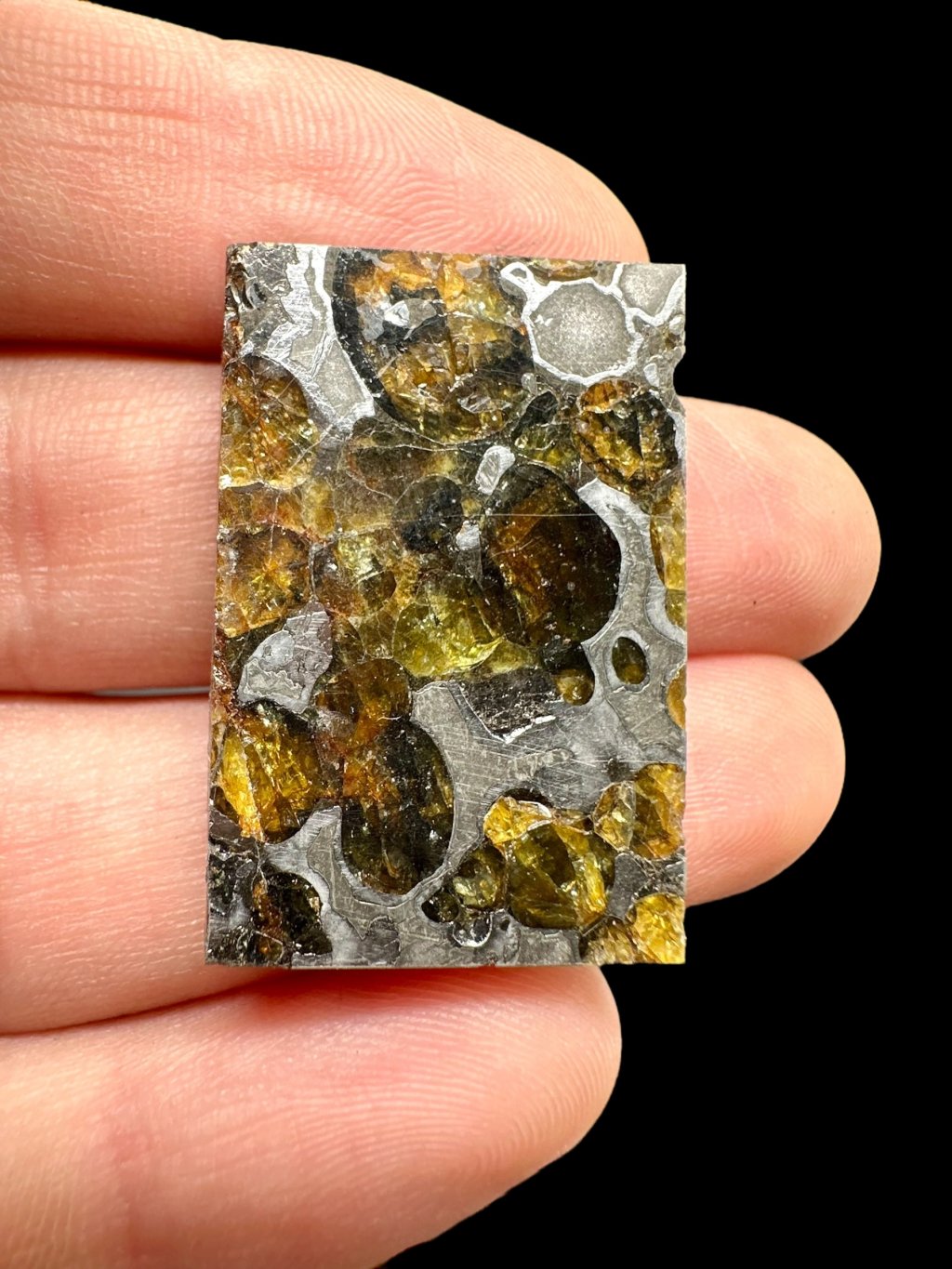 Dieser Stein-Eisen-Meteorit zeichnet sich durch eine bemerkenswerte Struktur aus, in der sich Eisen-Nickel-Legierungen mit Olivinkristallen abwechseln. Diese Olivine sind oft durchsichtig mit einem grün-gelben Farbton und bilden unregelmäßige Einschlüsse in der Metallmatrix. Dieser Kontrast verleiht dem Springwater Meteorit sein ästhetisch eindrucksvolles Erscheinungsbild.
