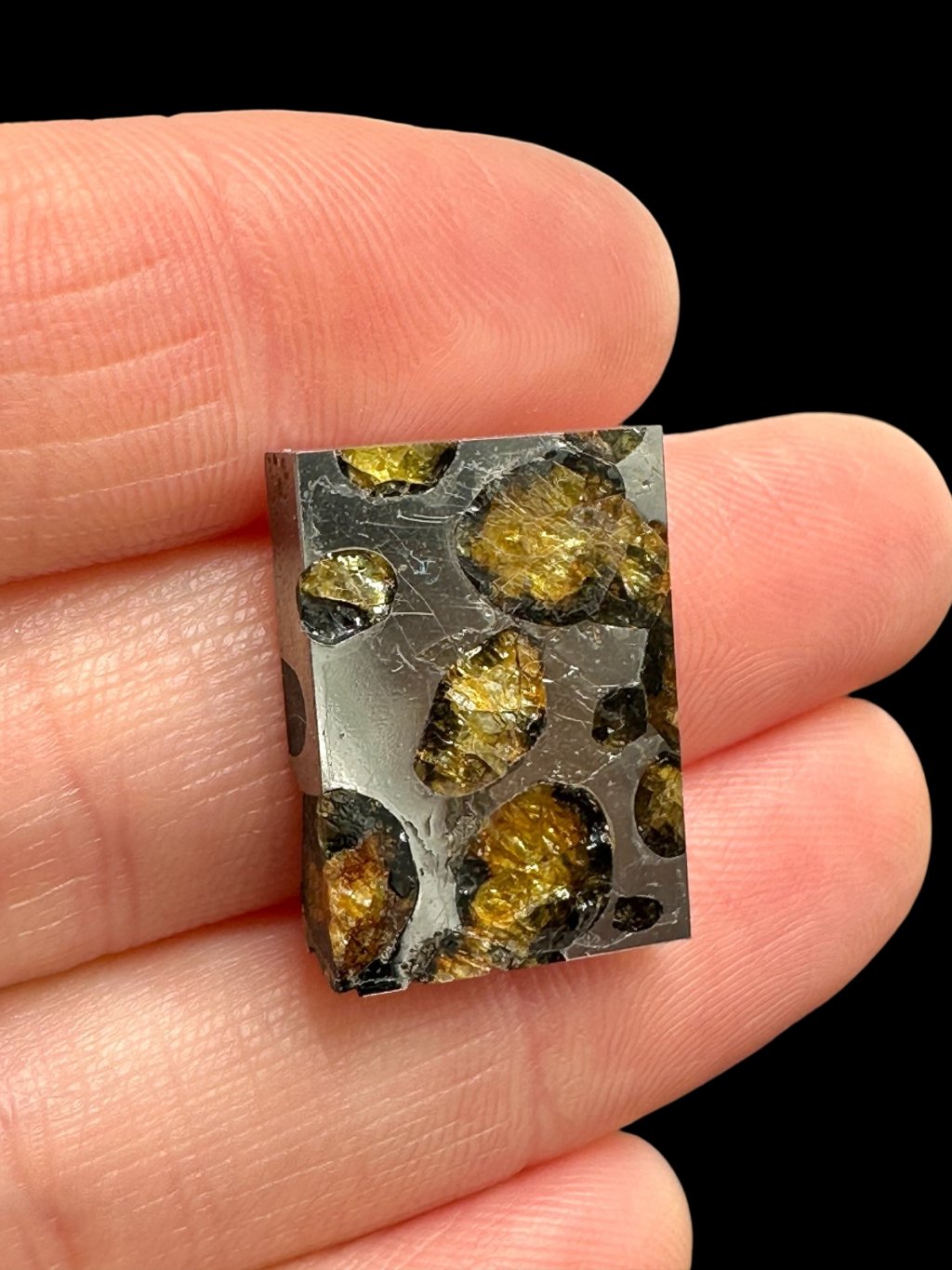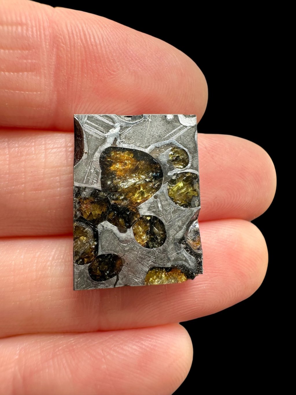 Dieser Stein-Eisen-Meteorit zeichnet sich durch eine bemerkenswerte Struktur aus, in der sich Eisen-Nickel-Legierungen mit Olivinkristallen abwechseln. Diese Olivine sind oft durchsichtig mit einem grün-gelben Farbton und bilden unregelmäßige Einschlüsse in der Metallmatrix. Dieser Kontrast verleiht dem Springwater Meteorit sein ästhetisch eindrucksvolles Erscheinungsbild.