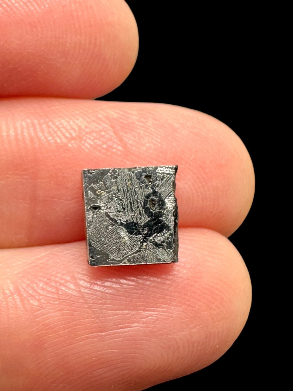 Oberflächenbehandlung: geschliffen, polierter Schnitt (nur auf einer Seite mit Säure geätzt – sichtbare Widmanstätten-Strukturen; die andere Seite ist poliert, aber nicht geätzt)