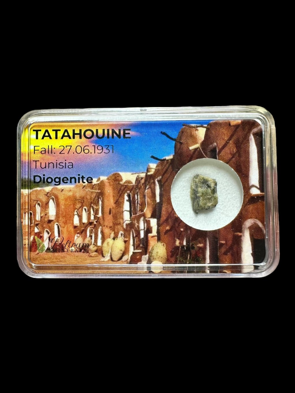Der Tatahouine-Meteorit gehört zu den Achondriten, genauer gesagt zu der Untergruppe der Diogenite. Diogenite sind tiefliegende Eruptivgesteine, die sich im Mantel von Vesta gebildet haben, einem der größten Objekte im Hauptasteroidengürtel zwischen Mars und Jupiter. Vesta gilt als Protoplanet und hat eine differenzierte, planetenähnliche Struktur, d. h. er hat einen Kern, einen Mantel und eine Kruste. Seine Zusammensetzung ist überwiegend pyroxenisch, d. h. er enthält große Mengen des Minerals Pyroxen, oft zusammen mit geringen Mengen Olivin und Plagioklas. Wissenschaftler vermuten, dass sie bei Kollisionen mit anderen Asteroiden von Vesta ausgeworfen wurden und schließlich als Meteoriten auf der Erde einschlugen.