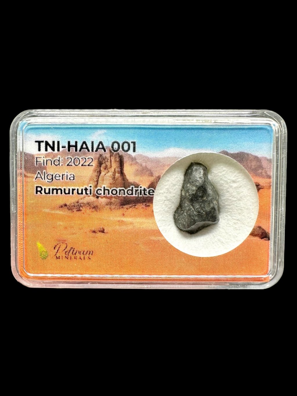 Der Meteorit Tni-Haia 001 wurde im Südwesten der algerischen Wüste am 5. und 6. Januar 2022 von Meteoritenjägern entdeckt. Er ist als Rumuruti-Chondrit (R3) klassifiziert – eine seltene Klasse von Steinmeteoriten mit geringem Grad an Metamorphose und zahlreichen Chondren (kugelförmige Mineralkörner), die auf minimale thermische Veränderung hinweisen.