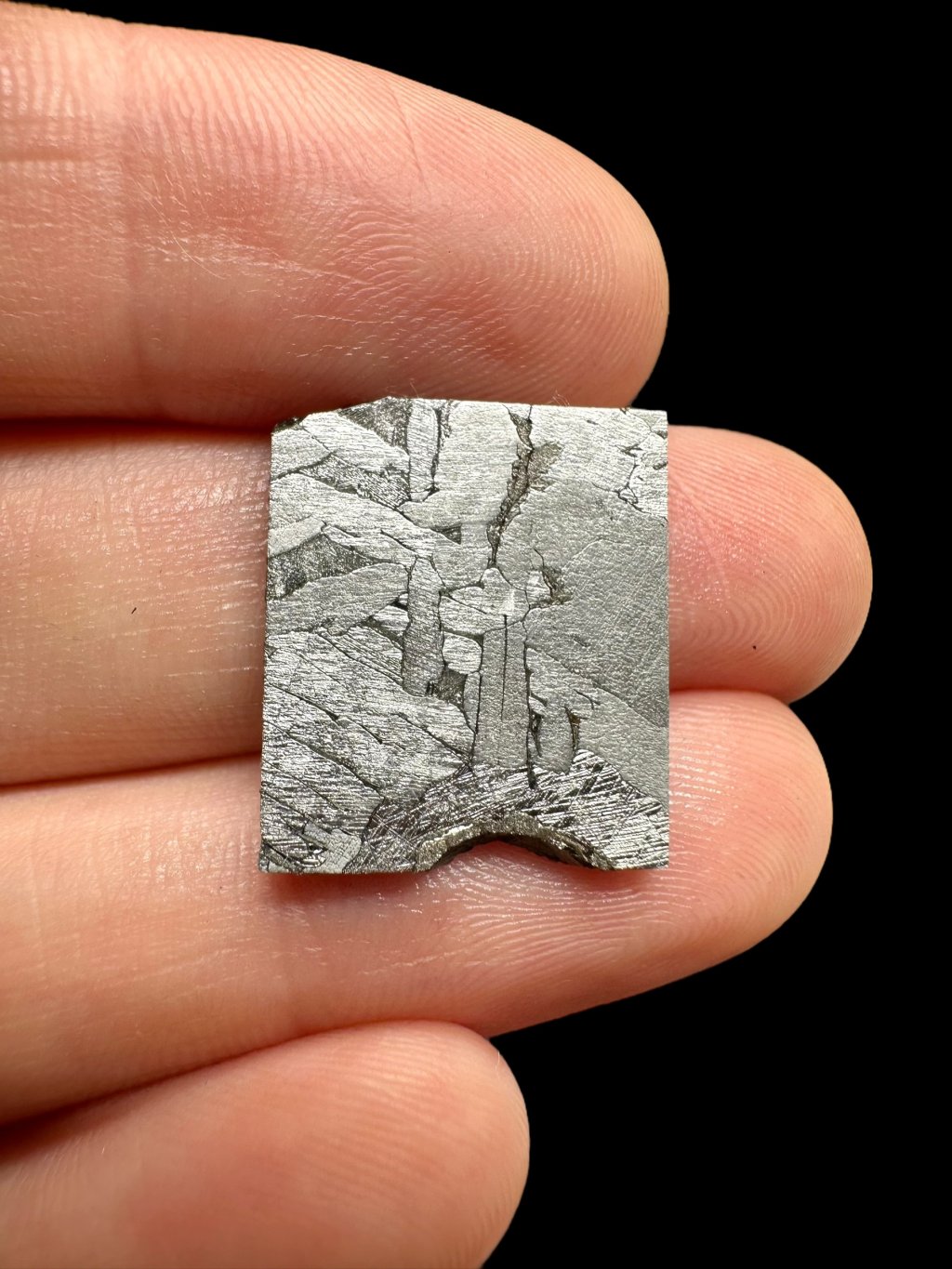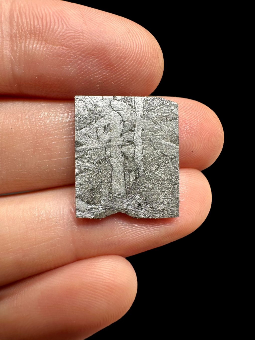 Toluca ist ein Eisenmeteorit, der zur Gruppe der sogenannten Oktaedrite gehört, genauer gesagt zur chemischen Gruppe IAB. Er fällt in die Untergruppe sLL (Subgruppe Low-Au, Low-Ni), was bedeutet, dass er im Vergleich zu anderen IAB-Meteoriten einen geringeren Anteil an Gold und Nickel enthält. Dennoch weist er einen ausreichend hohen Gehalt an Eisen und anderen Metallen auf, was ihm einen charakteristischen metallisch-silbernen Glanz verleiht. Beim Ätzen und Polieren treten die sogenannten Widmanstätten-Strukturen zum Vorschein – typische kristalline Muster, die durch extrem langsames Abkühlen des Metalls im Weltraum entstehen. Aufgrund seines hohen Eisengehalts ist Toluca sehr schwer – selbst ein relativ kleines Fragment kann überraschend viel wiegen. Neben Eisen und Nickel enthält er auch kleinere Mengen anderer Minerale wie Graphit oder Troilit, die gelegentlich kleine Einschlüsse im Material bilden.