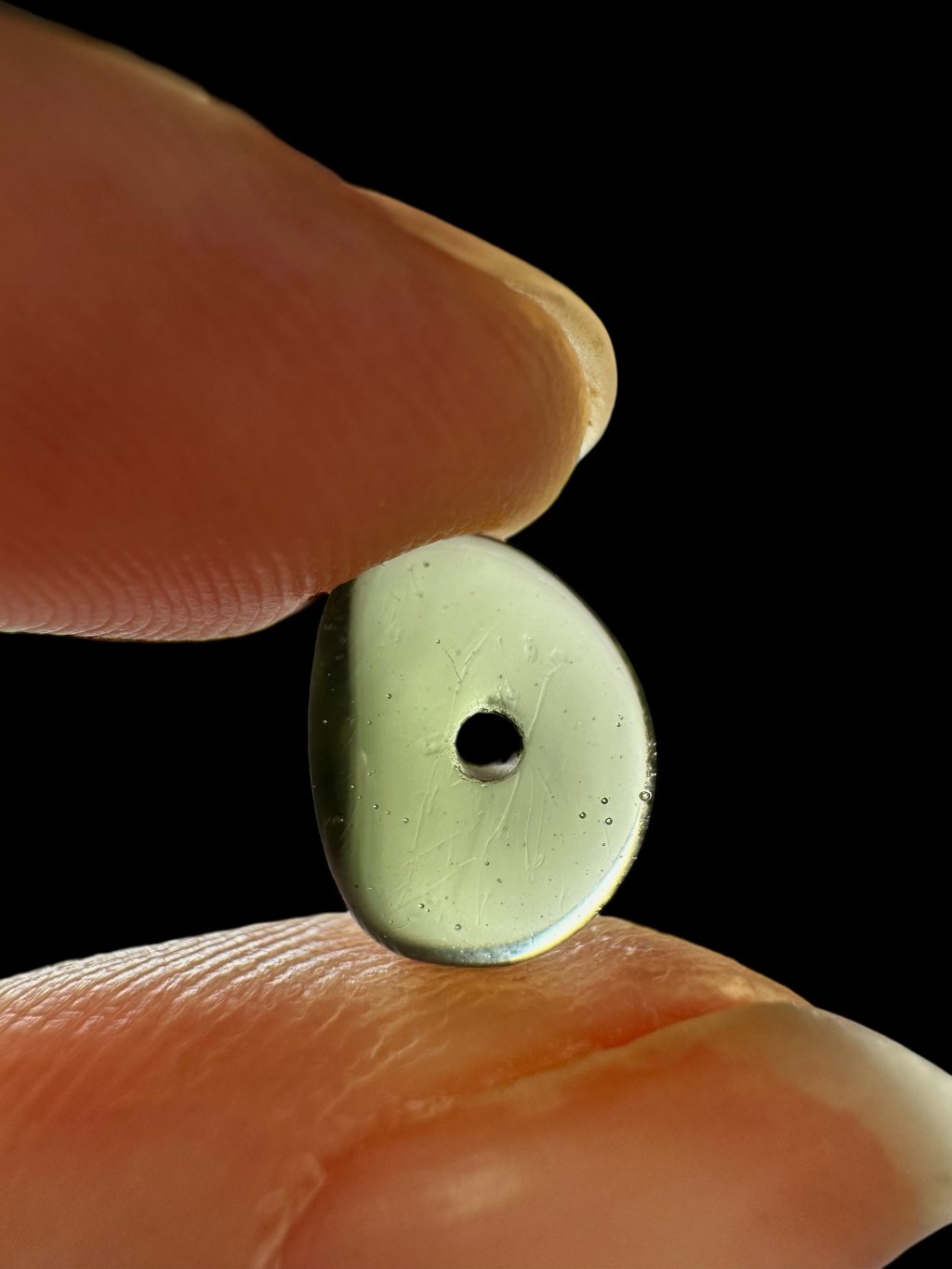 Moldavi-Perle mit gebohrtem Loch 1,5 mm