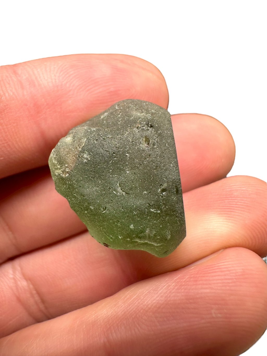 Moldavit-Schliff mit geschlossener Blase. Apfelgrüne Farbe.
