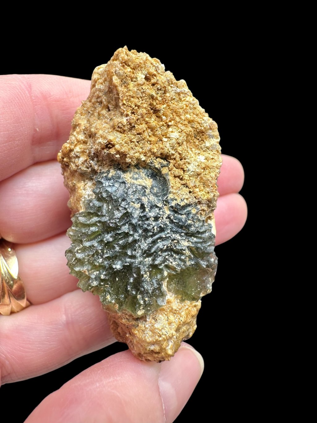 Dimensionen des Moldavites: 2,4 x 2,4 x 0,4 cm