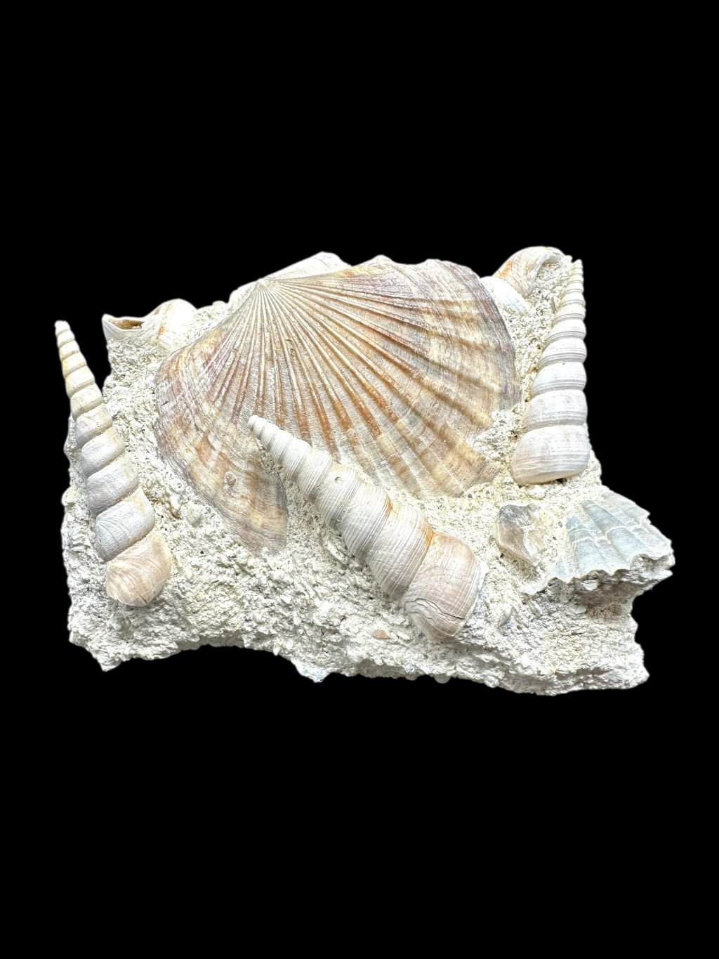 Muschelschalen von Meeresschnecken, Schnecken und Muscheln im Gestein – Bordeaux, Frankreich