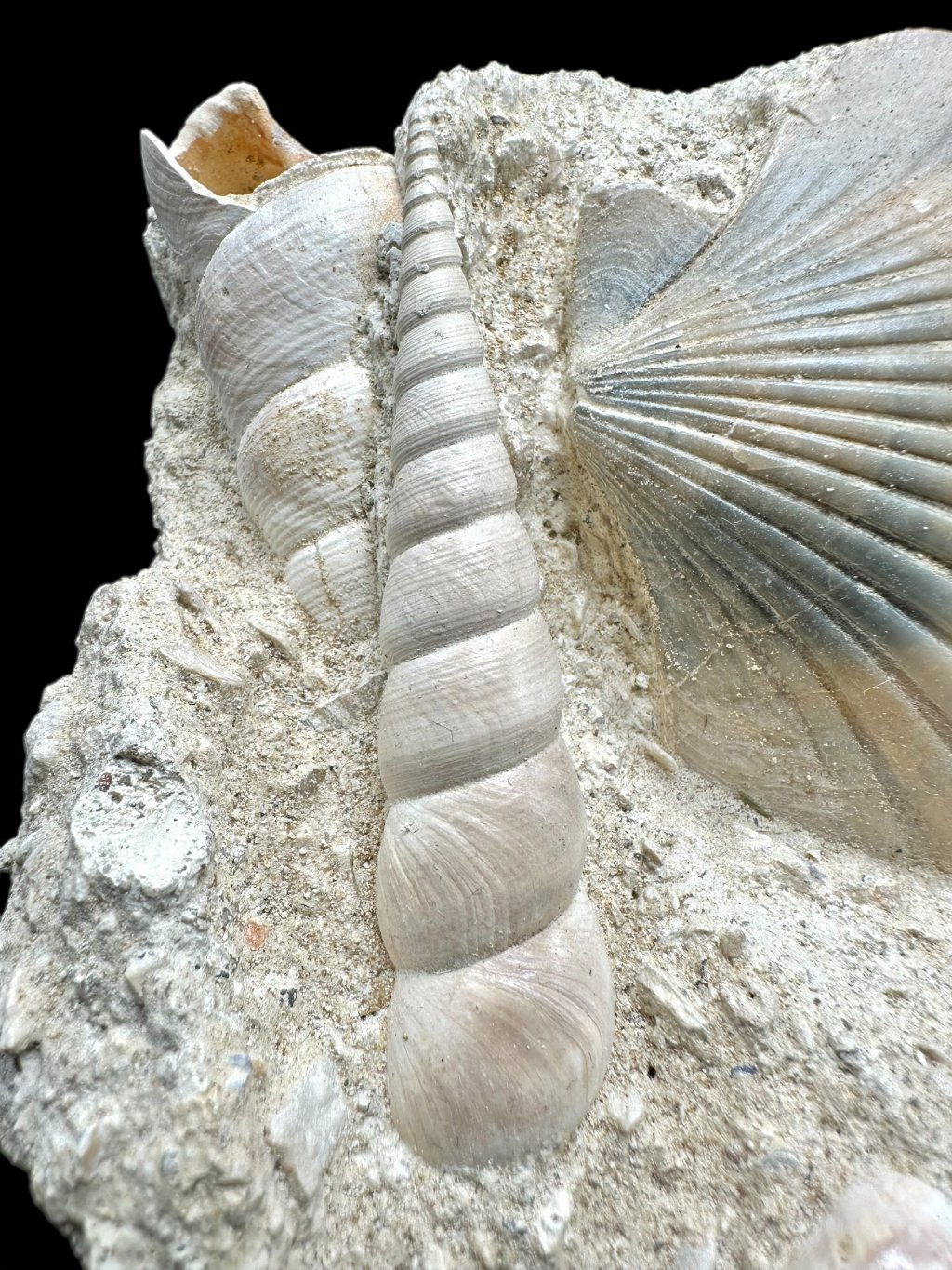 Muschelschalen von Meeresschnecken, Schnecken und Muscheln im Gestein – Bordeaux, Frankreich