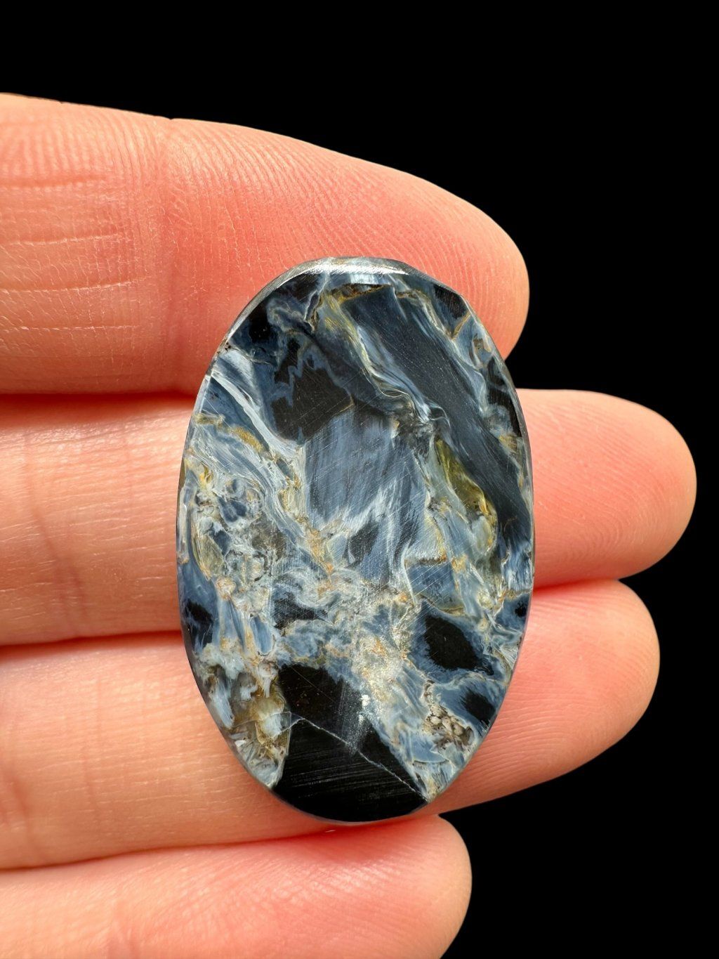 Pietersit ist eine seltene Varietät von Quarz, die für ihre markante und unregelmäßige faserige Struktur bekannt ist. Dieser Stein entsteht durch die Umwandlung faseriger Minerale, insbesondere Krokydolith, die anschließend silicifiziert werden. Das Ergebnis ist eine charakteristische chaotische Zeichnung mit einem Effekt ähnlich dem Tigerauge, oft als „gebrochene“ oder „stürmische“ Bänderung bezeichnet.