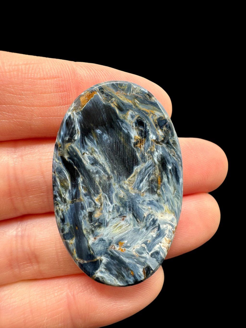 Pietersit ist eine seltene Varietät von Quarz, die für ihre markante und unregelmäßige faserige Struktur bekannt ist. Dieser Stein entsteht durch die Umwandlung faseriger Minerale, insbesondere Krokydolith, die anschließend silicifiziert werden. Das Ergebnis ist eine charakteristische chaotische Zeichnung mit einem Effekt ähnlich dem Tigerauge, oft als „gebrochene“ oder „stürmische“ Bänderung bezeichnet.