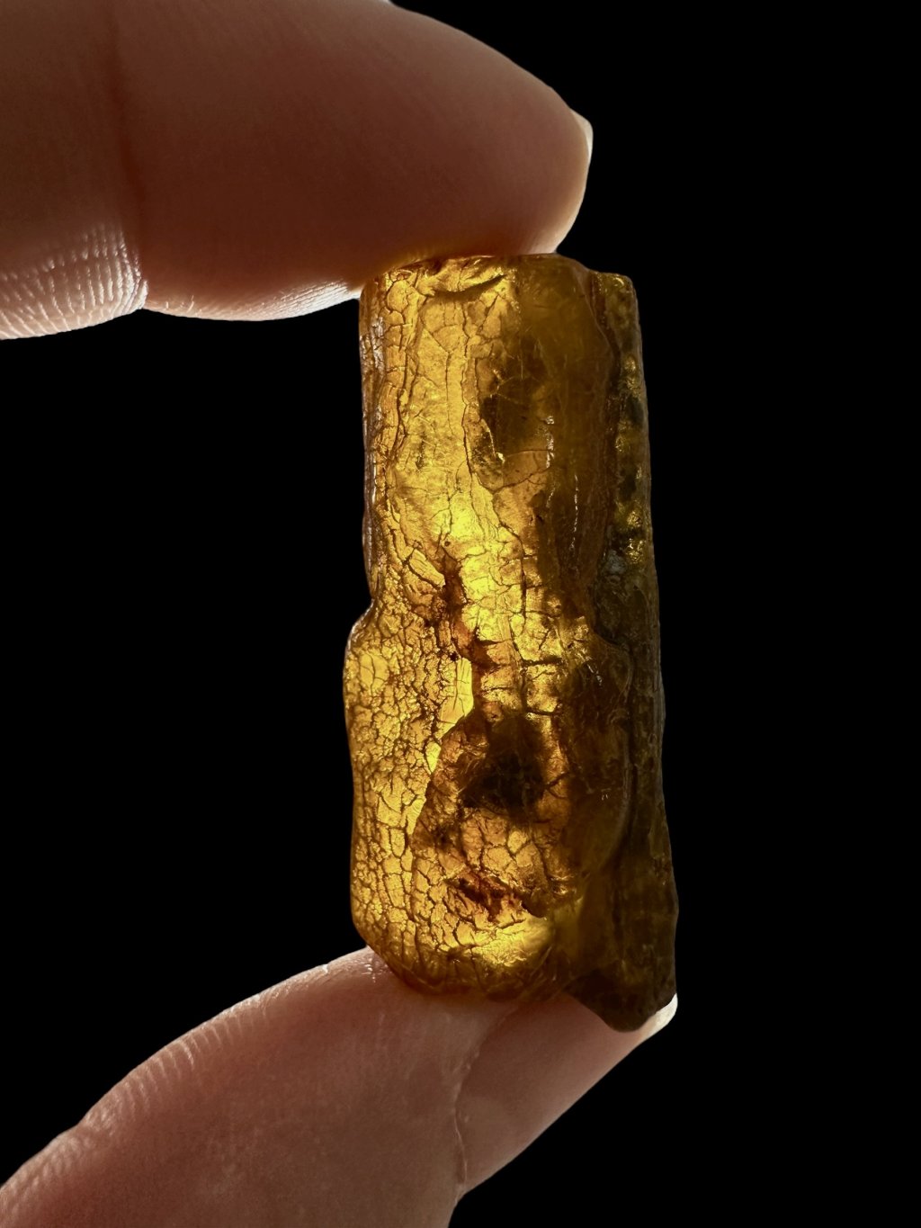 Litauischer Bernstein ist durch seine markante Farbe bekannt, die häufig von hell- bis dunkelgelb reicht und in honigfarbene oder orangefarbene Töne übergeht. Es gibt auch dunklere Varianten – von braun bis nahezu schwarz – sowie seltenere Ausführungen in fast weiß oder grünlich. Aufgrund seines hohen Gehalts an Bernsteinsäure (bis zu etwa 8 %) gilt Baltischer Bernstein im Vergleich zu anderen Typen als hochwertiger. Er enthält oft natürliche Einschlüsse wie Luftblasen, Pflanzenreste oder kleine Insekten, was seinen Sammlerwert und ästhetischen Reiz deutlich steigert.