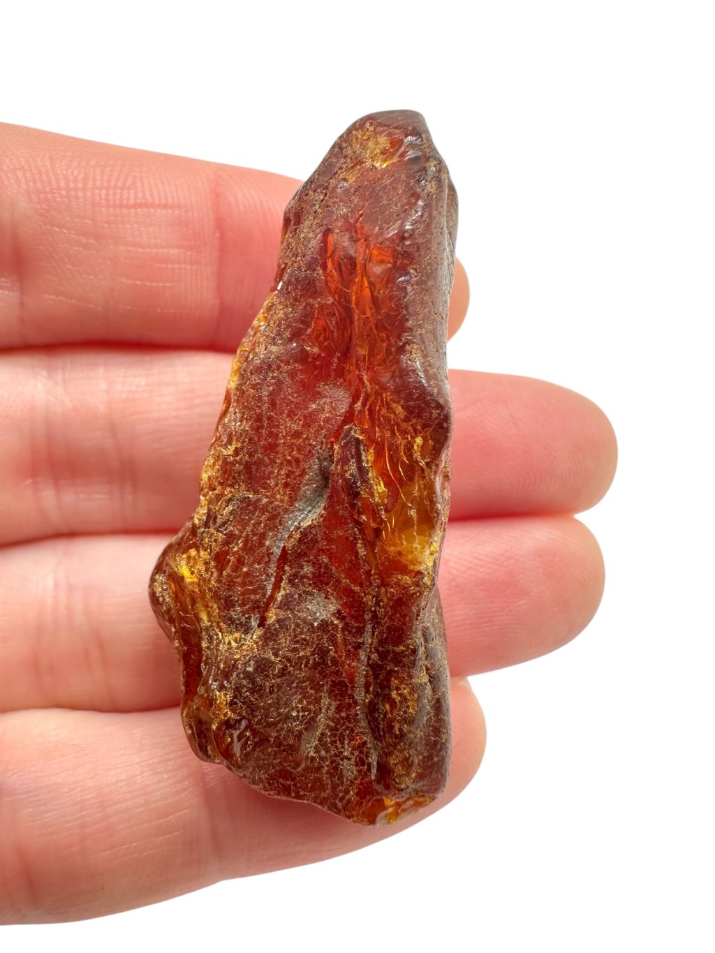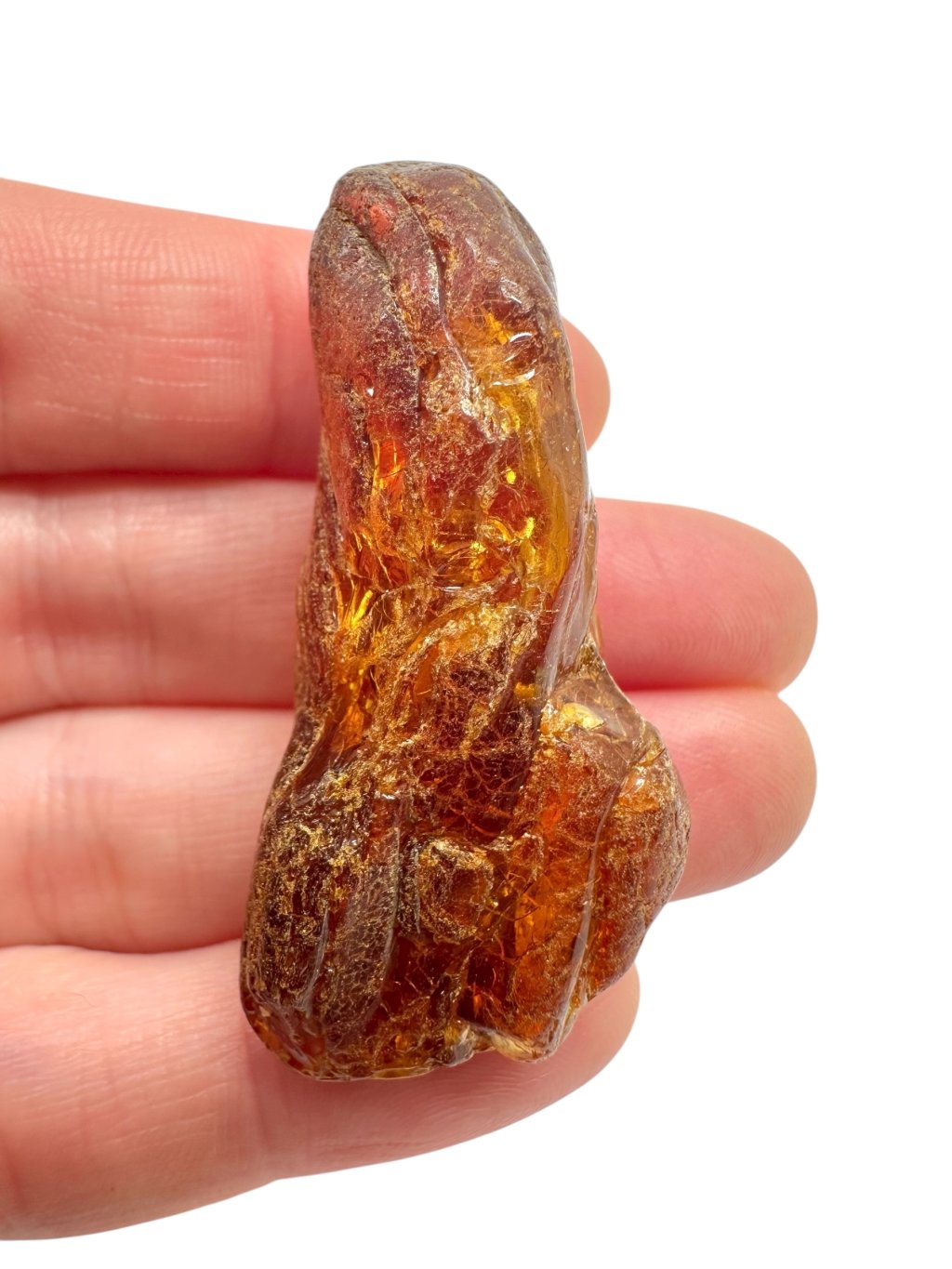 Litauischer Bernstein ist durch seine markante Farbe bekannt, die häufig von hell- bis dunkelgelb reicht und in honigfarbene oder orangefarbene Töne übergeht. Es gibt auch dunklere Varianten – von braun bis nahezu schwarz – sowie seltenere Ausführungen in fast weiß oder grünlich. Aufgrund seines hohen Gehalts an Bernsteinsäure (bis zu etwa 8 %) gilt Baltischer Bernstein im Vergleich zu anderen Typen als hochwertiger. Er enthält oft natürliche Einschlüsse wie Luftblasen, Pflanzenreste oder kleine Insekten, was seinen Sammlerwert und ästhetischen Reiz deutlich steigert.