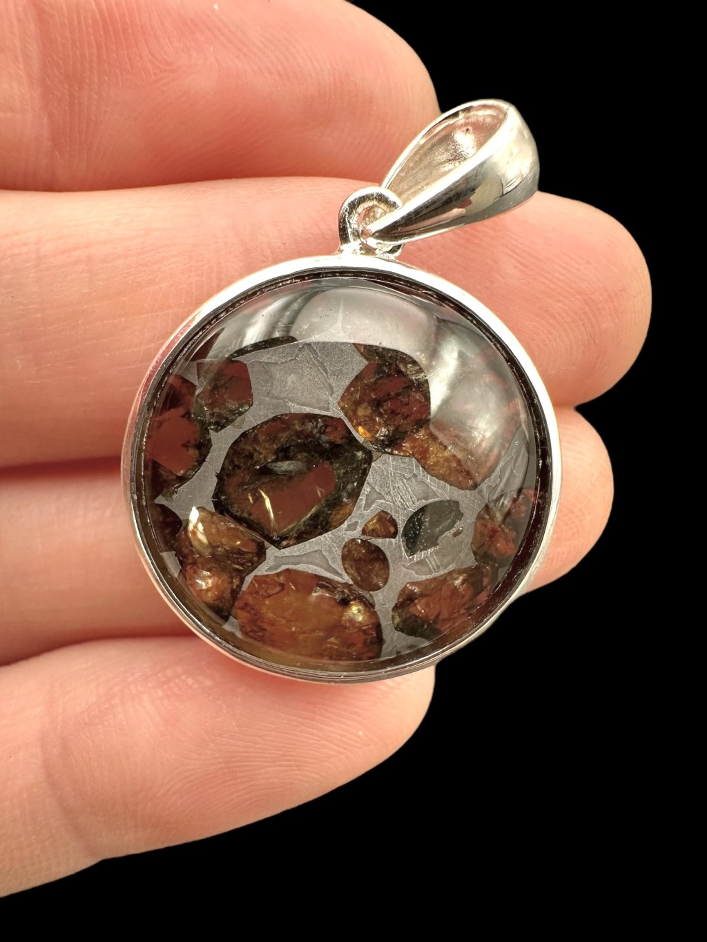 Material zur Befestigung des Meteoriten am Schmuckstück: Versilbertes Metall, ohne Punze, mit Kunstharz überzogen