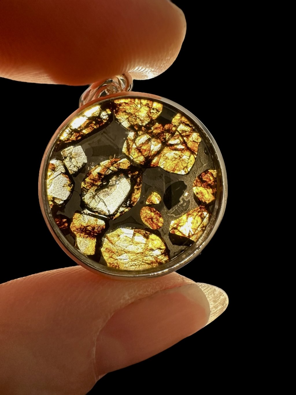Verteilung: Olivinkristalle sind in das Metall eingebettet und gleichmäßig über den gesamten Meteoriten verstreut. Diese Kombination aus Metall und Olivin verleiht dem Sericho-Meteoriten sein unverwechselbares Aussehen.