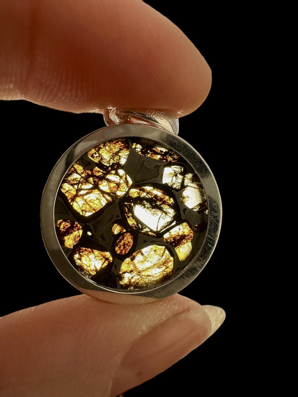 Material zur Befestigung des Meteoriten am Schmuckstück: Versilbertes Metall, ohne Punze, mit Kunstharz überzogen