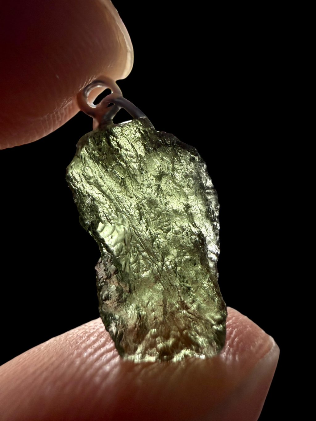 Hinweis: Der Anhänger wurde aus einem beschädigten Moldavit gefertigt und ist dadurch preislich günstiger.