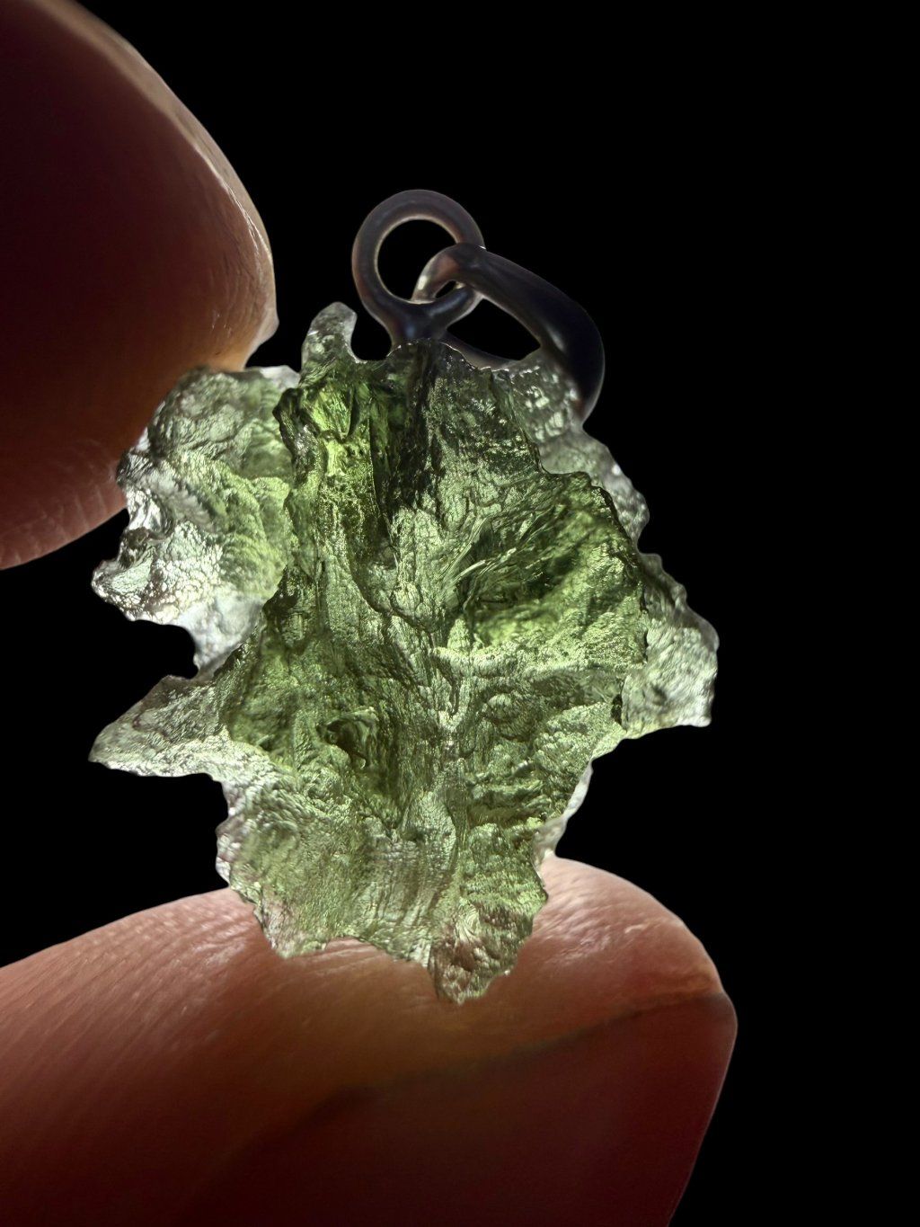 Hinweis: Der Anhänger wurde aus einem beschädigten Moldavit gefertigt und ist dadurch preislich günstiger.