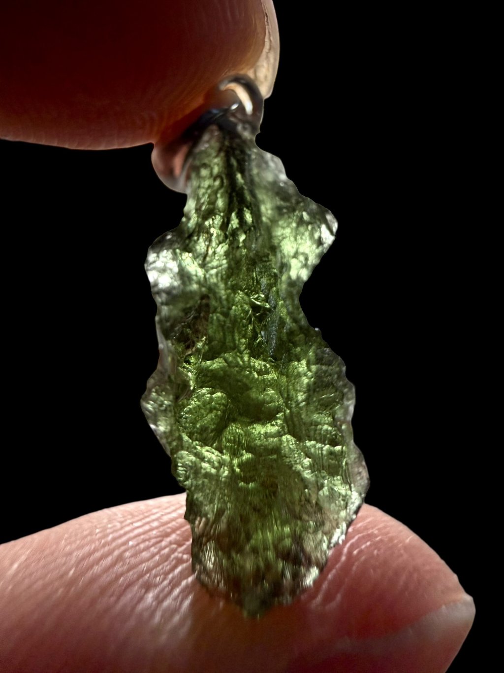 Hinweis: Der Anhänger wurde aus einem beschädigten Moldavit gefertigt und ist dadurch preislich günstiger.