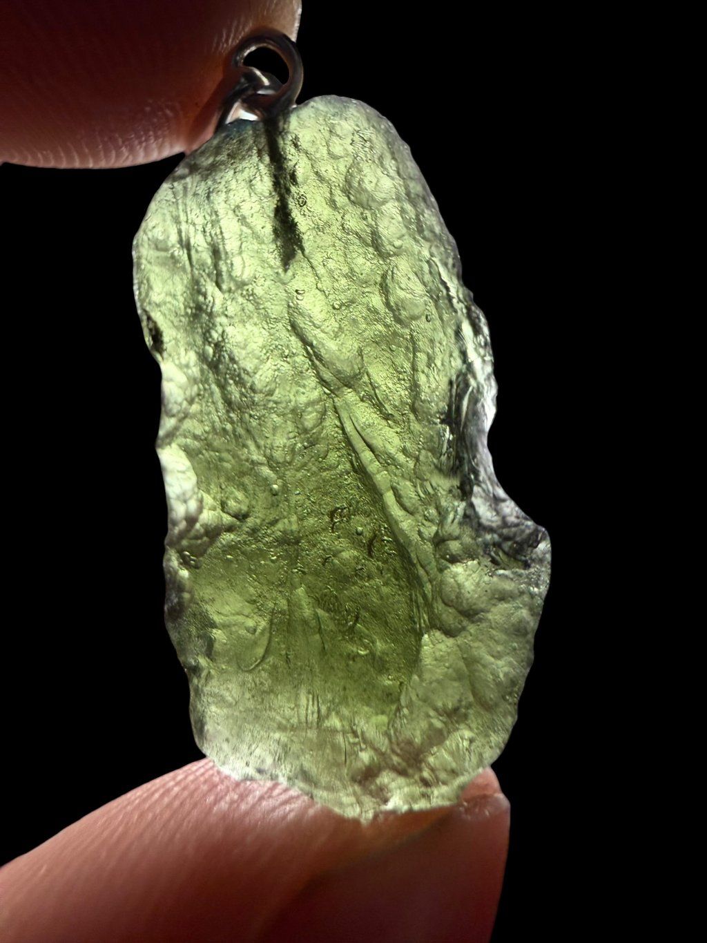 Hinweis: Der Anhänger wurde aus einem beschädigten Moldavit gefertigt und ist dadurch preislich günstiger.