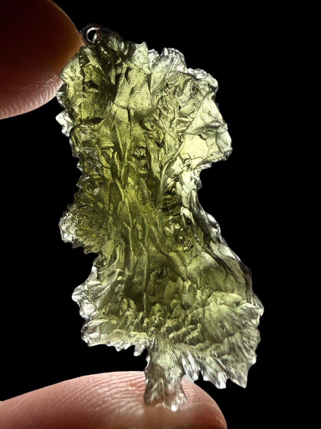 Hinweis: Der Anhänger wurde aus einem beschädigten Moldavit gefertigt und ist dadurch preislich günstiger.