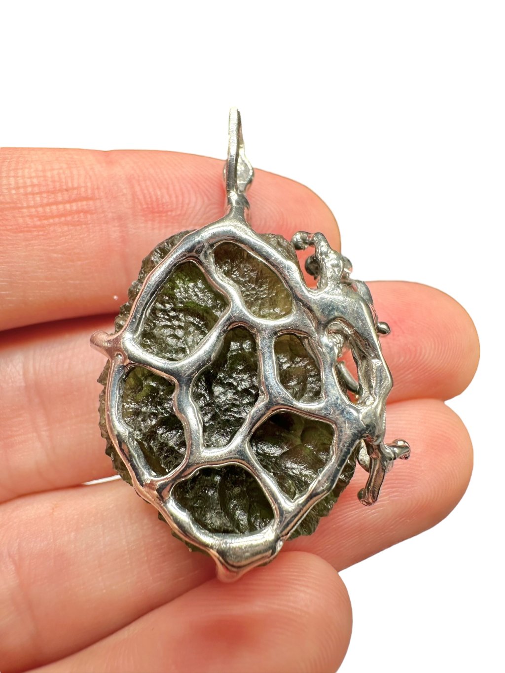 Silber Moldavit Anhänger mit vergoldeten Elementen 10,4g