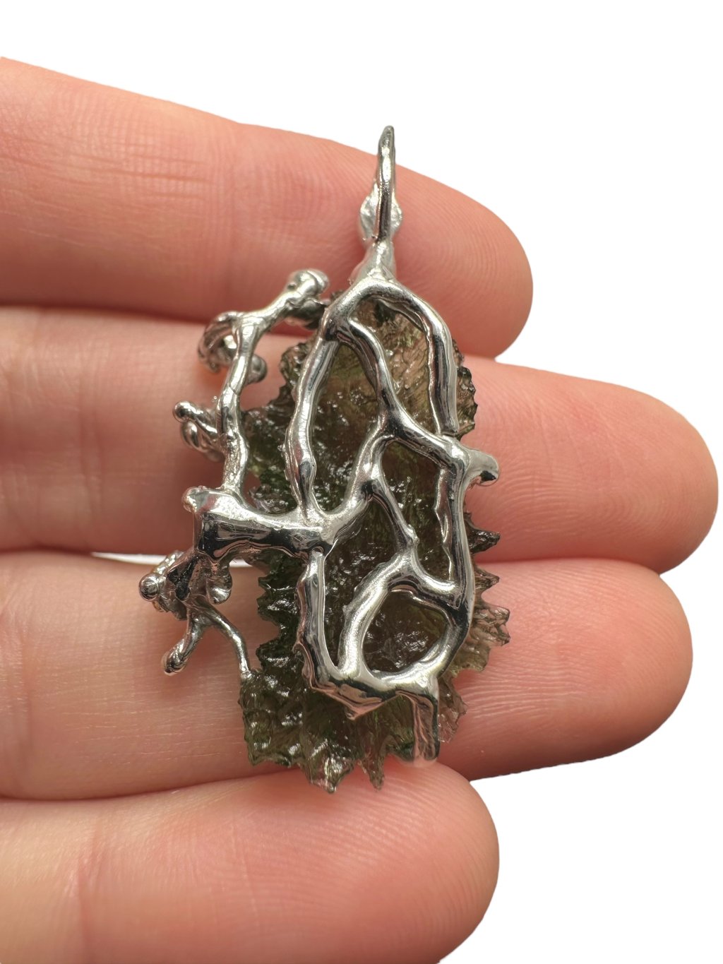 Silber Moldavit Anhänger mit vergoldeten Elementen 5,7g