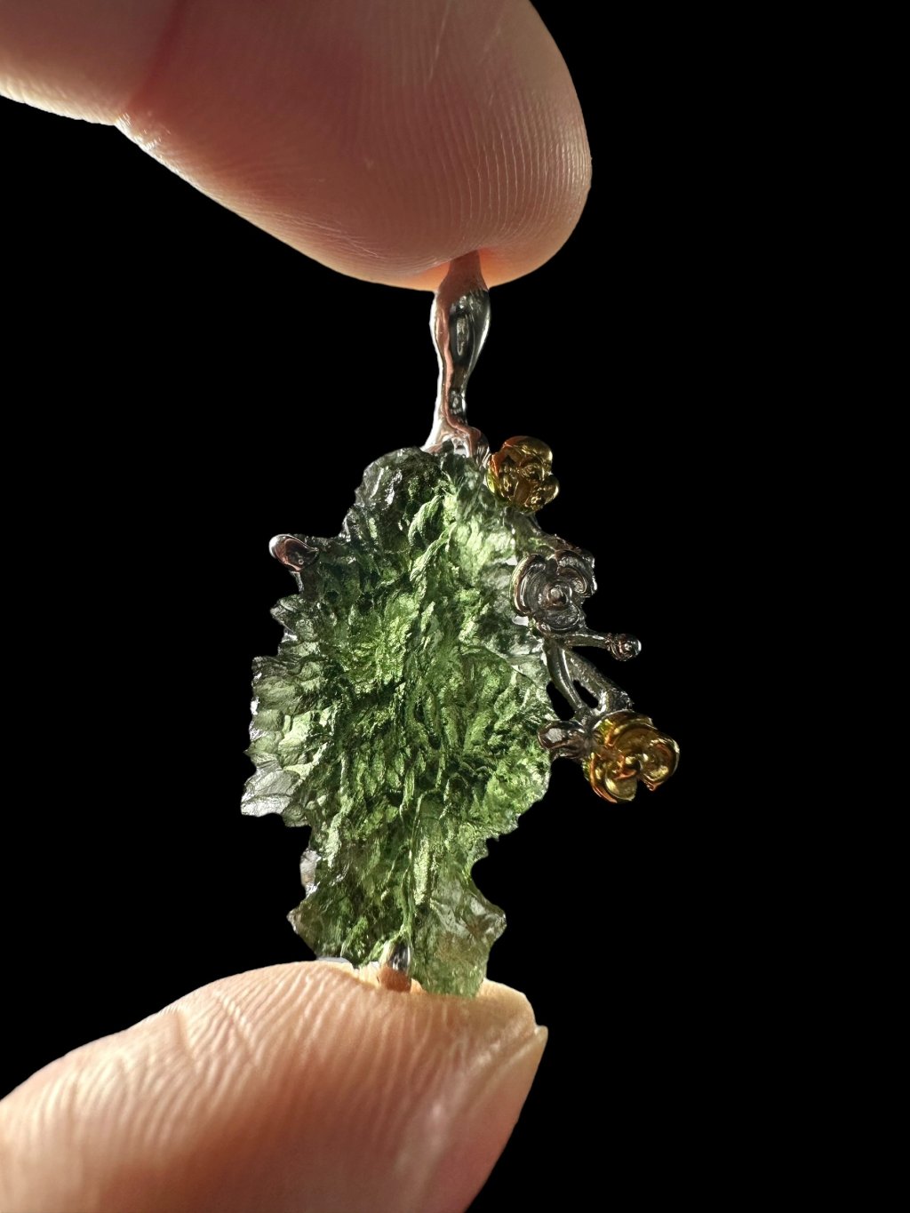Silber Moldavit Anhänger mit vergoldeten Elementen 5,9g