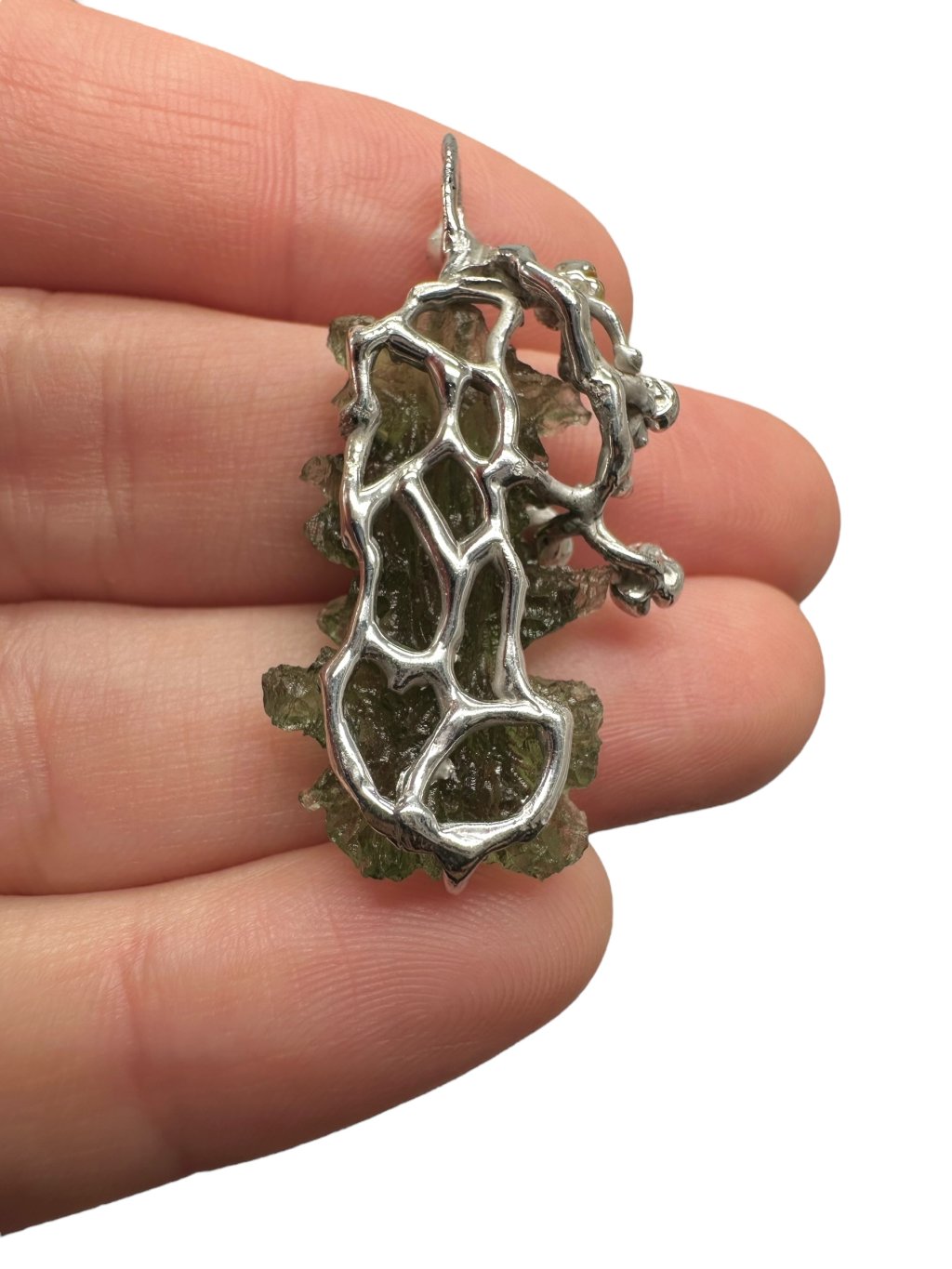 Silber Moldavit Anhänger mit vergoldeten Elementen 5g