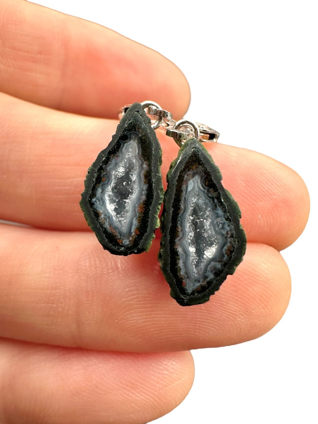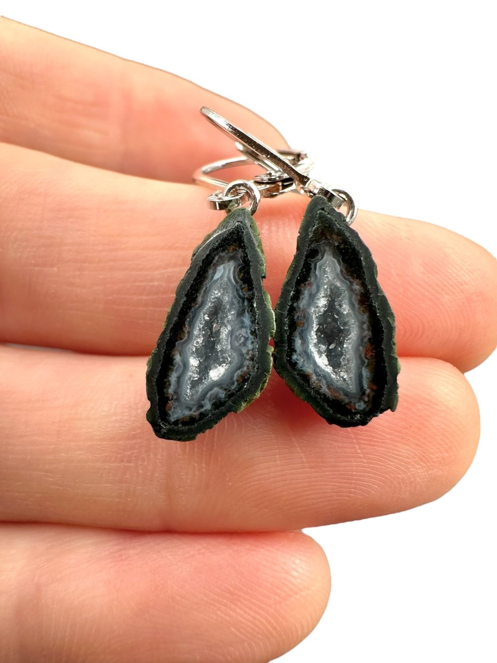 Silber Ohrringe aus Tabasco-Achat-Geode