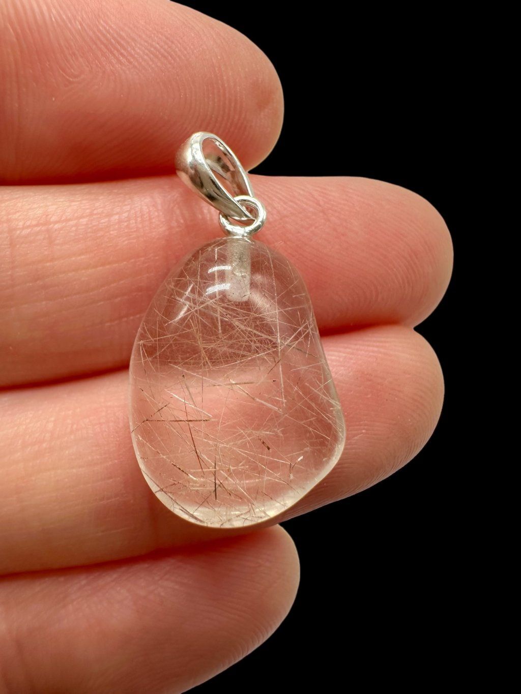 Silberner Anhänger aus Kristall mit Rutil – Brasilien