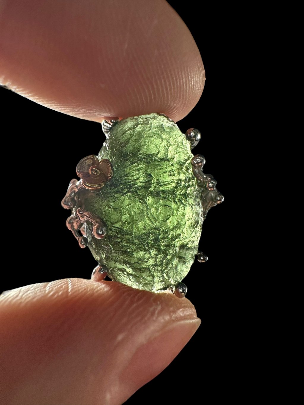 Silberring mit Moldavit mit vergoldeten Elementen 7,3g