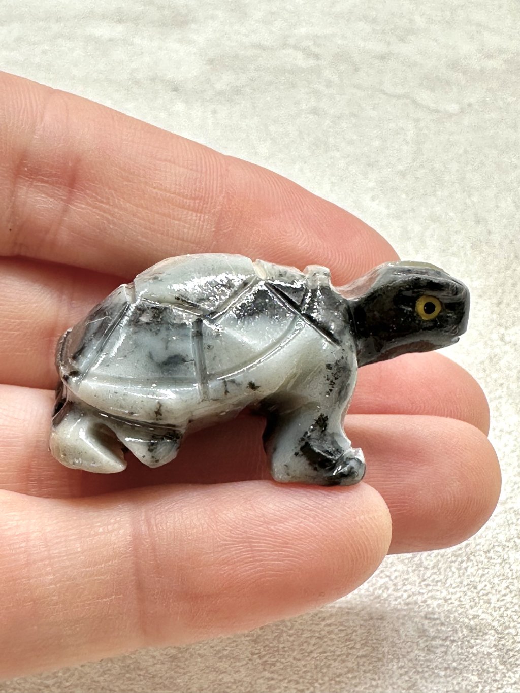 Das Malachittier ist ein dekoratives Objekt aus Malachit, das für seine tiefgrüne Farbe und sein Streifenmuster bekannt ist. Die natürliche Schönheit und Textur von Malachit machen diese Tiere zu beliebten Dekorations- und Sammlerstücken. Sie werden oft in Handarbeit hergestellt, wobei die Kunsthandwerker verschiedene Schattierungen und Streifen des Minerals verwenden, um jedem Tier ein einzigartiges Aussehen zu verleihen.