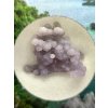 Traubenchalcedone sind bekannt für ihre zarten bis intensiven Farben, insbesondere Violett und Grün. Die violette Farbe wird durch das Vorhandensein von Manganverursacht, während die selteneren grünen Exemplare ihre Farbe durch andere Verunreinigungen im Gestein erhalten. Die Proben können auch mit winzigen Quarzkristallen bedeckt sein, die ihnen ein glänzendes Aussehen verleihen.
