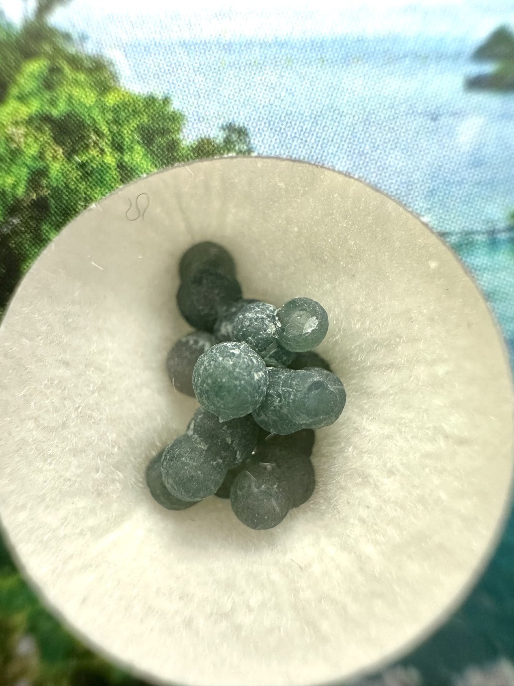 Traubenchalcedon ist eine relativ neue Entdeckung auf dem Mineralienmarkt. Die ersten Proben wurden 2016 auf der indonesischen Insel Sulawesi gefunden, und zwar im Gebiet von Manakarra. Traubenchalcedon ist eine Varietät von Quarz und zeichnet sich durch charakteristische kugelförmige Aggregate aus, die als Sphärolithen bezeichnet werden und durch Ausfällung aus kieselsäurereichen (SiO₂) geleeartigen Lösungen entstehen. Diese kugelförmigen Strukturen, die oft bis zu 1 cm groß sind, bestehen aus feinen Fäden gleicher Länge, die dicht aneinander gepackt sind. Die einzelnen Kugeln sind oft miteinander oder mit dem darunter liegenden Gestein verschmolzen und bilden eine Form, die an eine Weintraube erinnert, daher auch der Name.