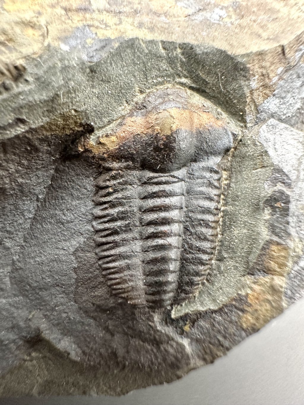 Trilobiten waren meeresbewohnende Gliederfüßer, die über einen Zeitraum von mehr als 270 Millionen Jahren die Weltmeere bevölkerten – vom frühen Kambrium bis zum Ende des Perms (etwa vor 521 bis 252 Millionen Jahren). Sie gelten als eine der ältesten und langlebigsten komplexen Lebensformen in der Erdgeschichte. Der Name „Trilobit“ stammt von der dreilappigen Körperstruktur („tri-lobit“ = drei Lappen), die aus einem Cephalon (Kopf), Thorax (Brustabschnitte) und Pygidium (Schwanzschild) besteht. Trilobitenfossilien sind weltweit verbreitet, doch einige Fundorte – wie das Barrandium in der Tschechischen Republik – gehören zu den bedeutendsten. Von hier stammt auch die bekannte Art Ellipsocephalus hoffi.